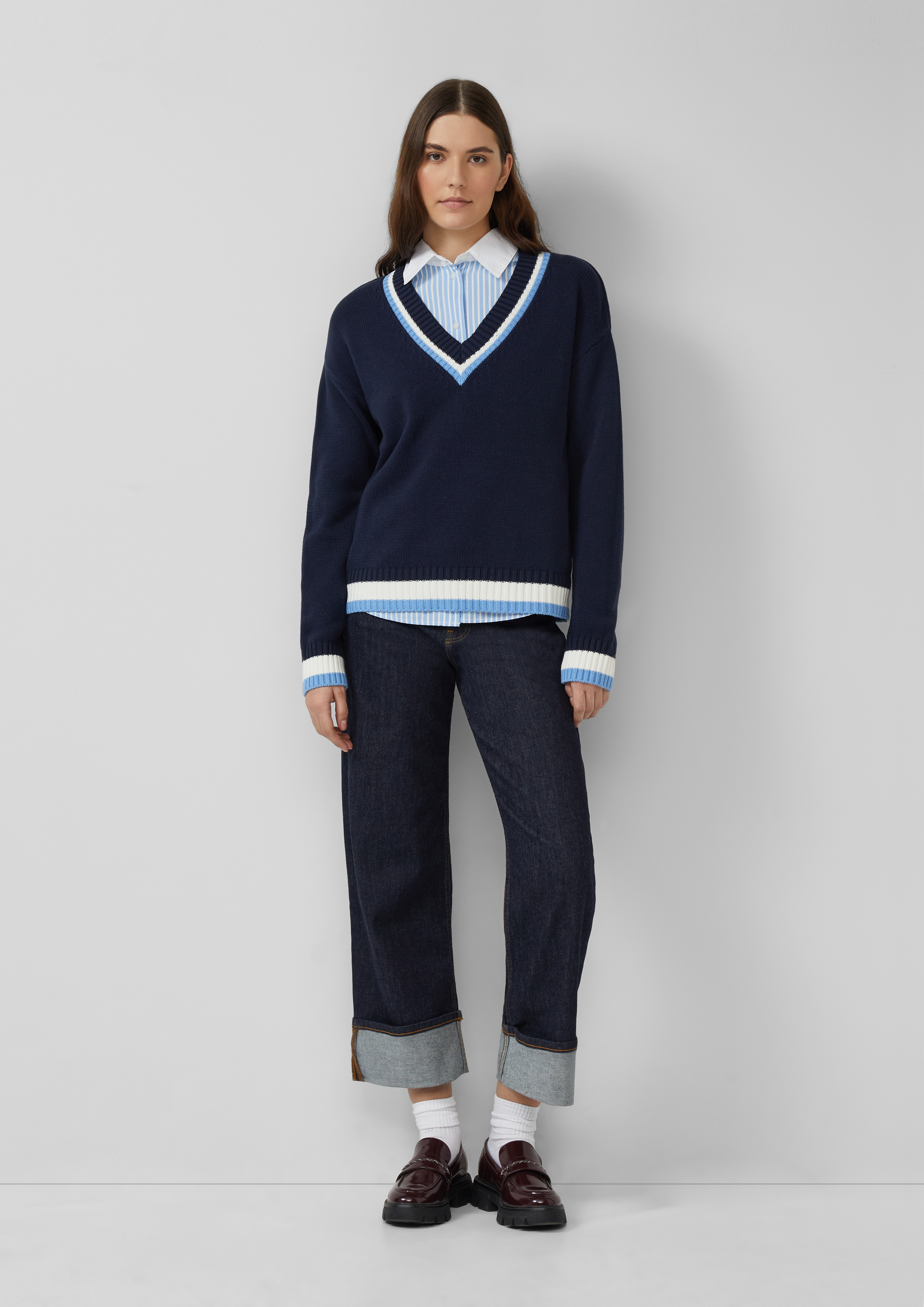 Pletený svetr z bavlněné směsi s výstřihem do V